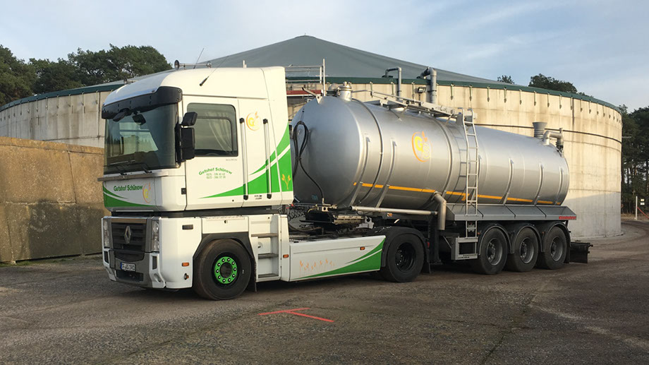 Das Team des Agrarservice Schünow transportiert Gärerzeugnisse von und zu Biogasanlagen - unabhängig von Wetterlagen bzw. Außentemperaturen.