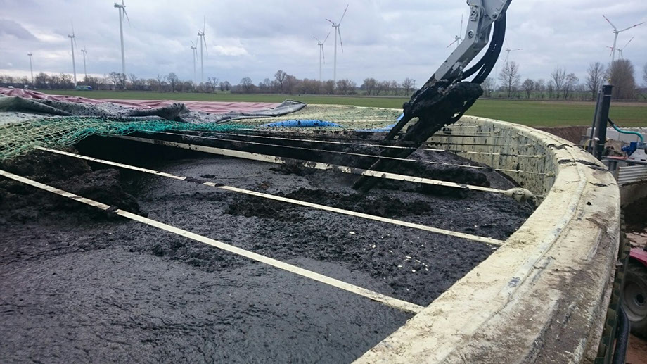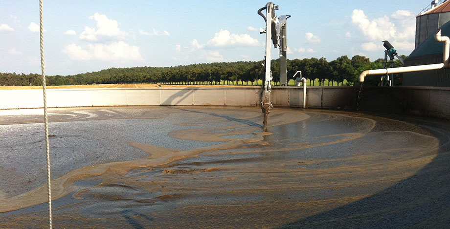Der Güllemixer eignet sich auch hervorragend um Klärbecken zur Reinigung aufzurühren und vollständig zu entleeren. Mit dem langen Ausleger des Güllemixers können auch große Becken vollständig durchmischt werden. Vor der Ausbringung der Gülle wird mit dem Güllemixer die Flüssigkeit homogenisiert, indem Sink- und Schwimmschichten beseitigt werden.
